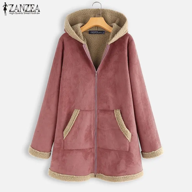 remarkable 2019 Plus Size ZANZEA Winter Zipper Fleece Jackets Women Vintage Solid Hooded Long Sleeve Warm Coat